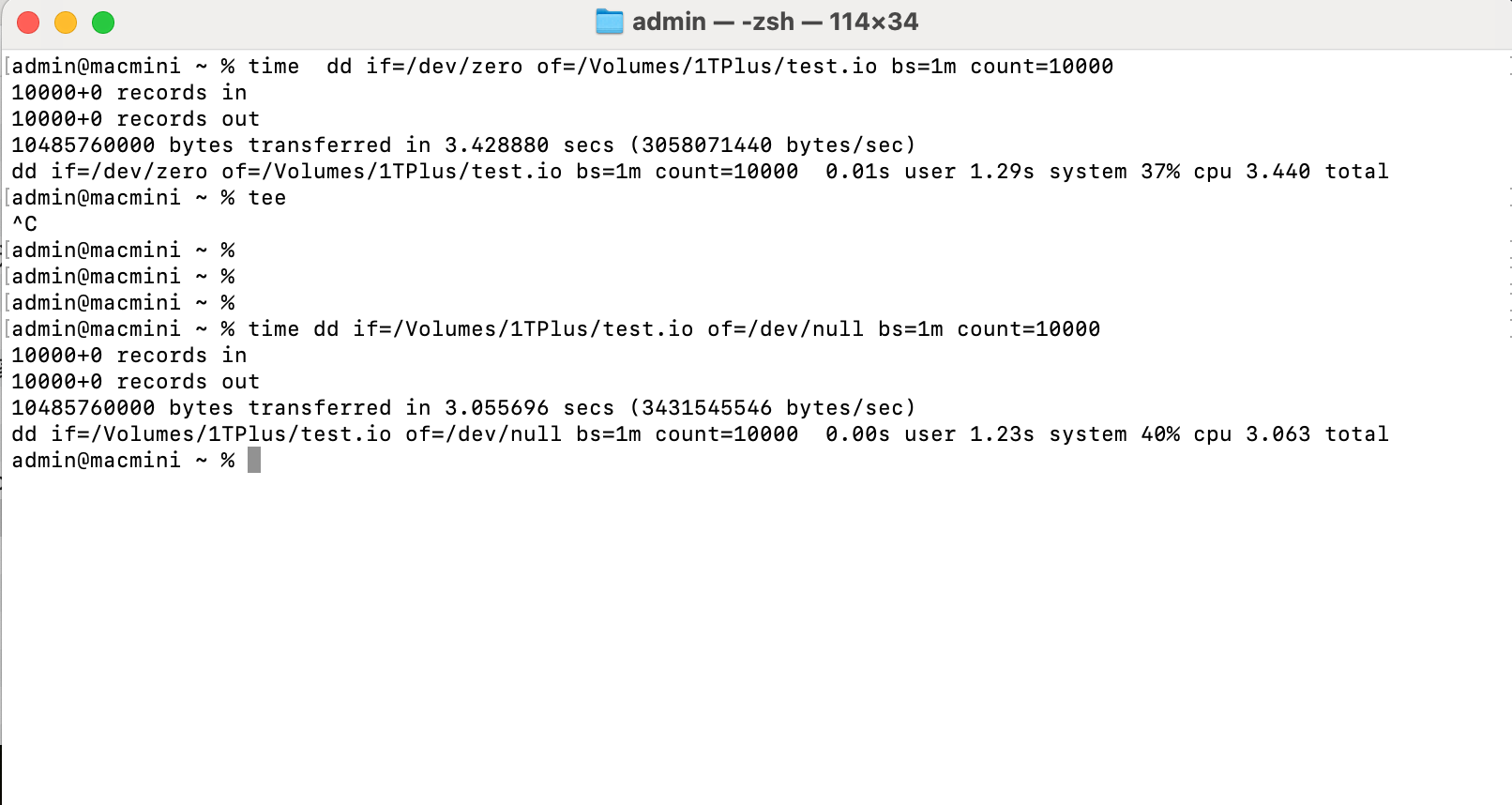 章节-4 Mac mini 与雷电4的硬盘盒M.2 PCIE4.0速度测试